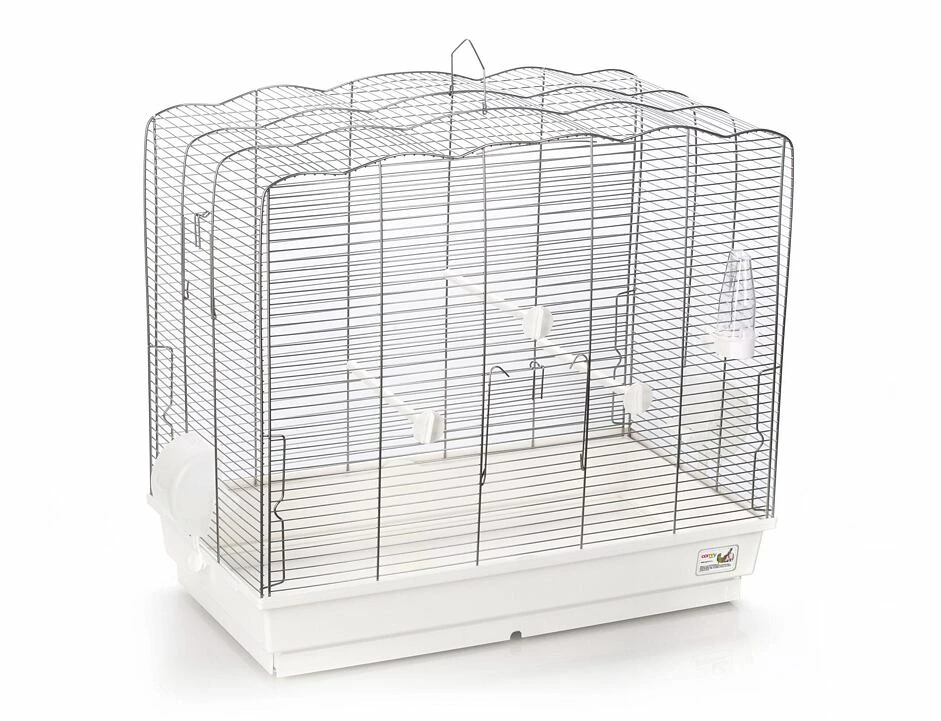 Der Käfig JOLLY besteht aus einer Schale aus strapazierfähigem Kunststoff und einer Haube mit Querdrähten. Die horizontalen Drähte der Haube ermöglichen Klettern und Bewegung, die für die richtige Entwicklung erforderlich sind. Wichtig ist, dass das Tablett eine Schublade hat, die eine schnelle Reinigung des Käfigs ermöglicht. Der eigentliche Hingucker dieses Käfigs sind die Futter- und Wasserbehälter. Das originelle Aussehen des Käfigs ist zweifellos ein Vorteil. Aber es sieht nicht nur gut aus, sondern ist auch bequem zu bedienen. Der Käfig wird mit Sitzstangen, einem Wasserspender und Samenbehältern geliefert. Futterbehälter sind so konzipiert, dass sie befüllt werden können, ohne den Käfig zu öffnen.
