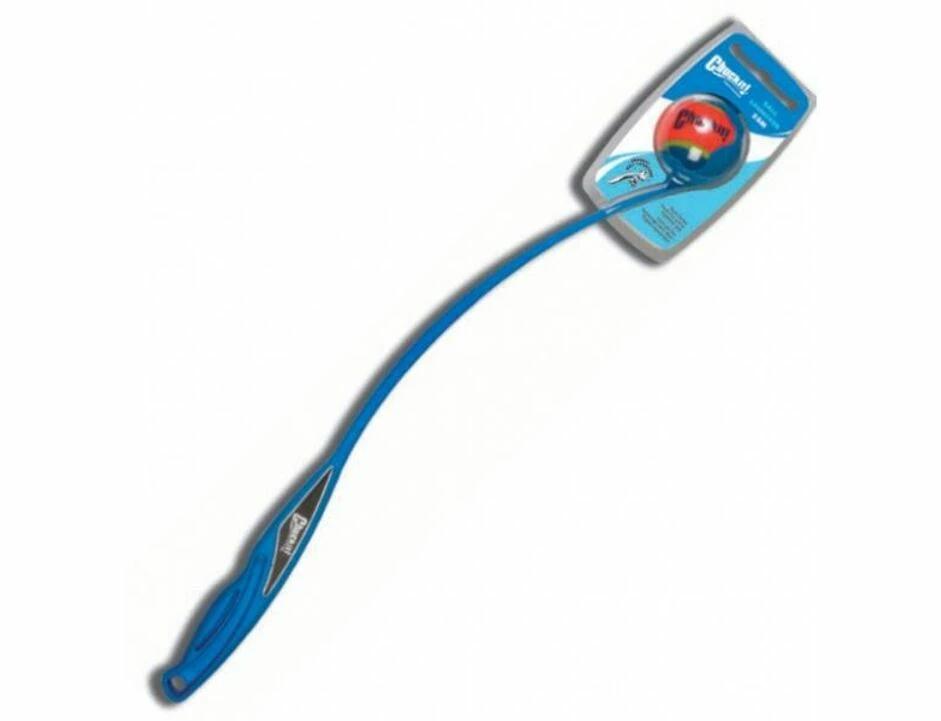 Die Ballschleuder ist ein leicht gebogener Stab aus Kunststoff. Am unteren Ende gibt es eine Art künstliche Hand, in die genau ein CHUCKIT Tennisball, ein CHUCKIT UltraBall oder ein Ball ähnlicher Größe hineinpasst. Diese wird über den am Boden liegenden Ball gestülpt, so dass man ihn direkt vom Boden aufnehmen kann. Dann holt man mit der Ballschleuder weit nach hinten aus und schleudert los.