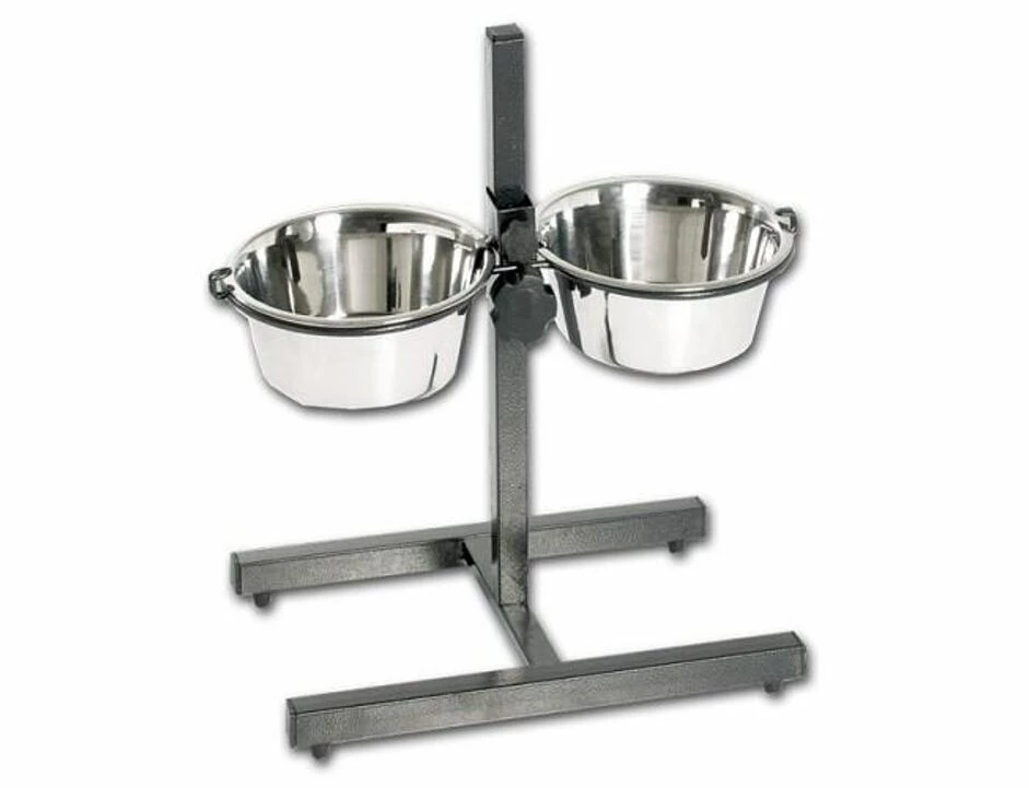 Edelstahlschalen im Ständer verhindern eine Magenverdrehung.