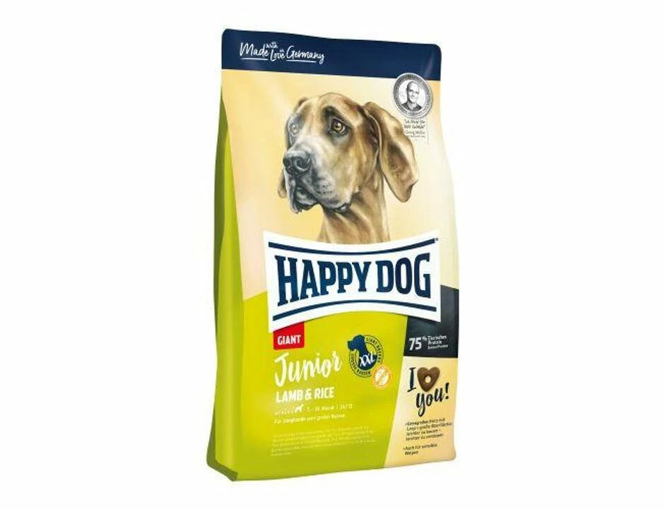Ab dem 7. Lebensmonat sinkt die Wachstumsintensität langsam ab. Gerade bei Junghunden sehr großer Rassen muss das Futter auf den nun geänderten Protein- und Energiebedarf angepasst werden, um ernährungsbedingten Wachstumsstörungen vorzubeugen. Happy Dog Junior Giant Lamb & Rice ist optimal an die Bedürfnisse von Junghunden sehr großer Rassen angepasst und sorgt für ein harmonisches Wachstum in der Junghunde-Phase. Neben einem reduzierten Energiegehalt ist auch der Proteingehalt angepasst. Die geflügelfreie Rezeptur von Happy Dog Junior Giant Lamb & Rice mit schmackhaftem Lamm, hochverdaulichem Reis und wertvoller Neuseeland-Muschel für die Gelenke, sorgt für eine optimale Entwicklung – auch von sensiblen Junghunden. Basierend auf dem Happy Dog Natural Life Concept ® wird dein Hund mit allem versorgt, wovon sein Organismus ganzheitlich profitiert. Ebenso wie im Welpenfutter unterstützen Leinsamen, ausgewählte Kräuter und Vitamin C den Verdauungstrakt, das Immunsystem und die ungesättigten Fettsäuren aus Leinsamen sorgen für ein glänzendes Fell.