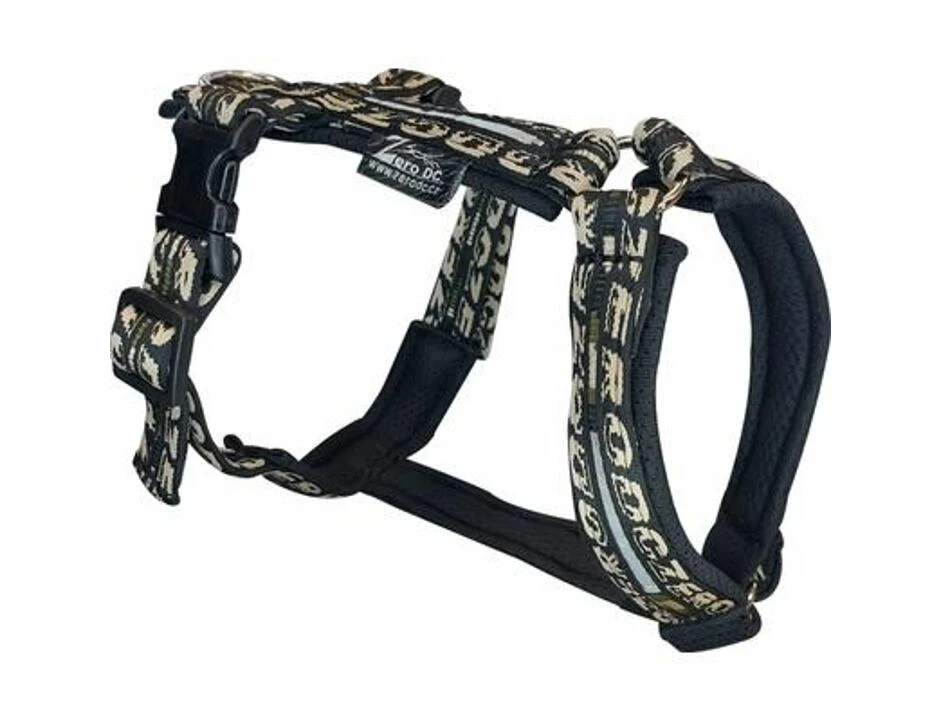 Das ROYAL Geschirr ist leicht, mit einem zarten Futter gefüttert und mit einem Band gefüttert, das dem Produkt einen luxuriösen Look verleiht, aber sehr sanft zu Fell und Haut des Hundes ist. Das Geschirr wird sanft auf der Unterseite des Bauches, im Nacken und auf dem Verbindungsring unter dem Hals gepolstert, um zu verhindern, dass der Hund dort abreibt, wo der Zug am größten ist. Reflektierende Elemente befinden sich auf dem Rücken und Nacken des Hundes. Einfaches Ankleiden ermöglicht Schnallen auf beiden Seiten des Gurtzeugs. Es wird in vielen Farben hergestellt.