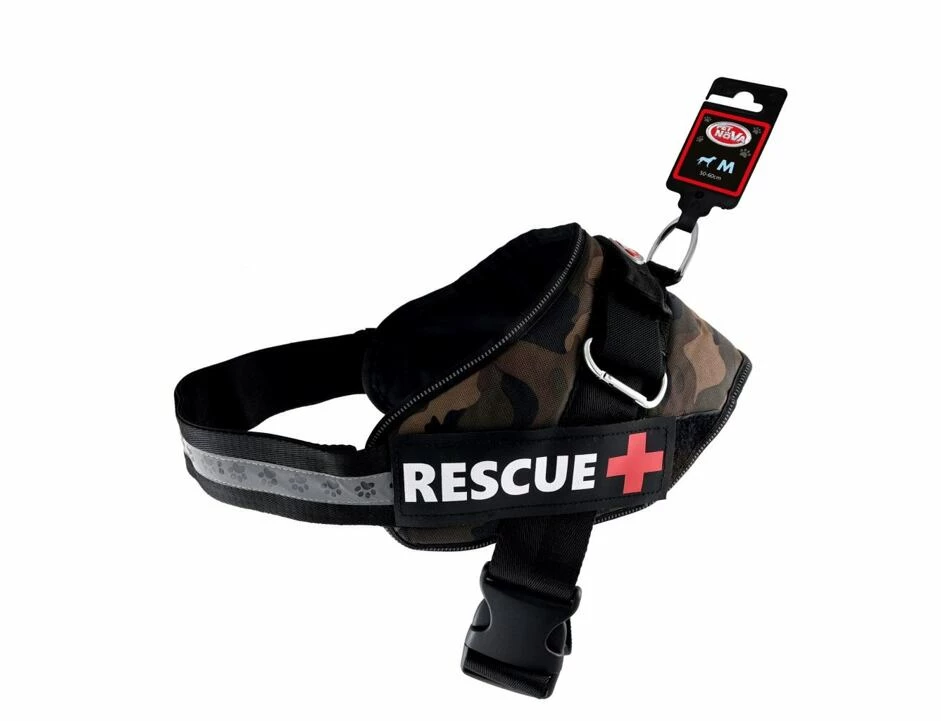 Starke Hundegeschirr – RESCUE +, Ausbildungsgeschirr, verstellbare Größe XL (65-90cm), camuflage