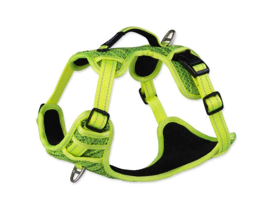 Hundegeschirr mit reflektierenden Elementen.