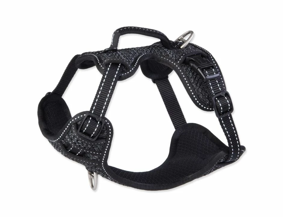 Hundegeschirr mit reflektierenden Elementen.