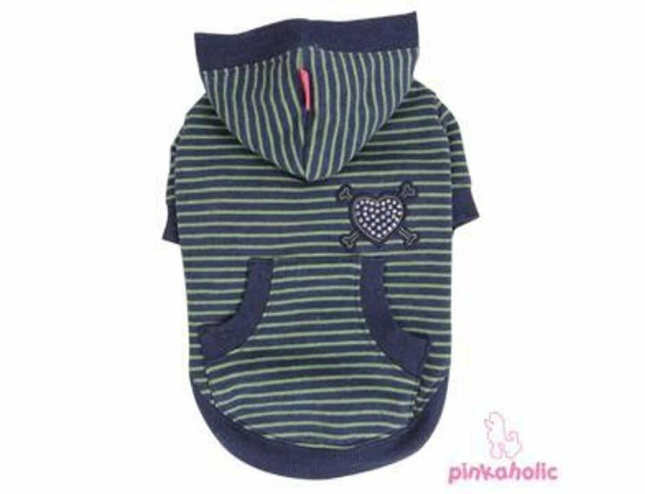 In Streifenmuster mit verziertem Herz genäht und mit kleinen Taschen. Sehr sportlich-elegant für kleine und große Hunde bis Größe XXL!