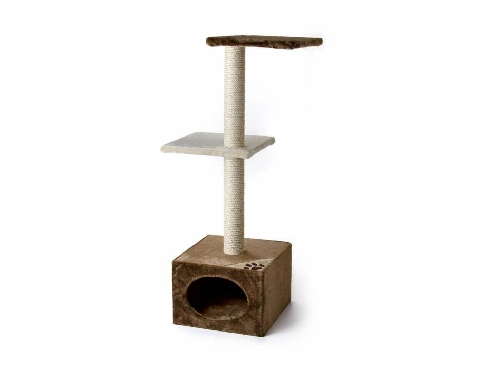 Kratzbaum für Katzen, die im Haus leben. Sie können so ihre Krallen hier schärfen ohne Ihre Möbel, Teppiche, und Geräte zu beschädigen.