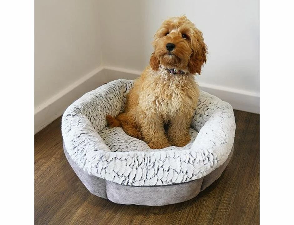 Dieses weiche, flauschige runde Bett bietet Haustieren in den kälteren Monaten Wärme. Seine neutrale Farbe wird Ihr Zuhause und Ihre Einrichtung ergänzen.