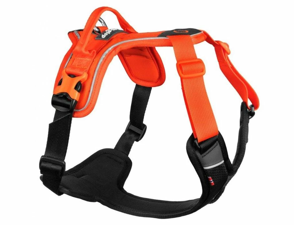 Dieses komfortable Wander- und Alltagsgeschirr lässt sich an vier Punkten individuell an den Hund anpassen und ist daher auch besonders gut für Welpen und heranwachsende Hunde geeignet. Die sehr variablen Einstellmöglichkeiten des Geschirres ermöglichen ein langes Tragen. Das Nonstop dogwear Ramble Harness ist aber auch eine sehr gute Wahl für Vierbeiner mit starkem Körperbau. Die sehr guten Polsterungen an Brust und Rücken erhöhen den Tragekomfort, auch wenn der Hund an der Leine zieht. Trotz der guten Polsterung ist das Hundegeschirr überraschend leicht und bequem zu tragen. Die seitlichen Klickverschlüsse erleichtern das an- und ausziehen. Die robusten Duraflex-Clips haben abgerundete Kanten für eine bessere Haltbarkeit und können ausgetauscht werden, falls der Hund darauf herumgekaut hat.
